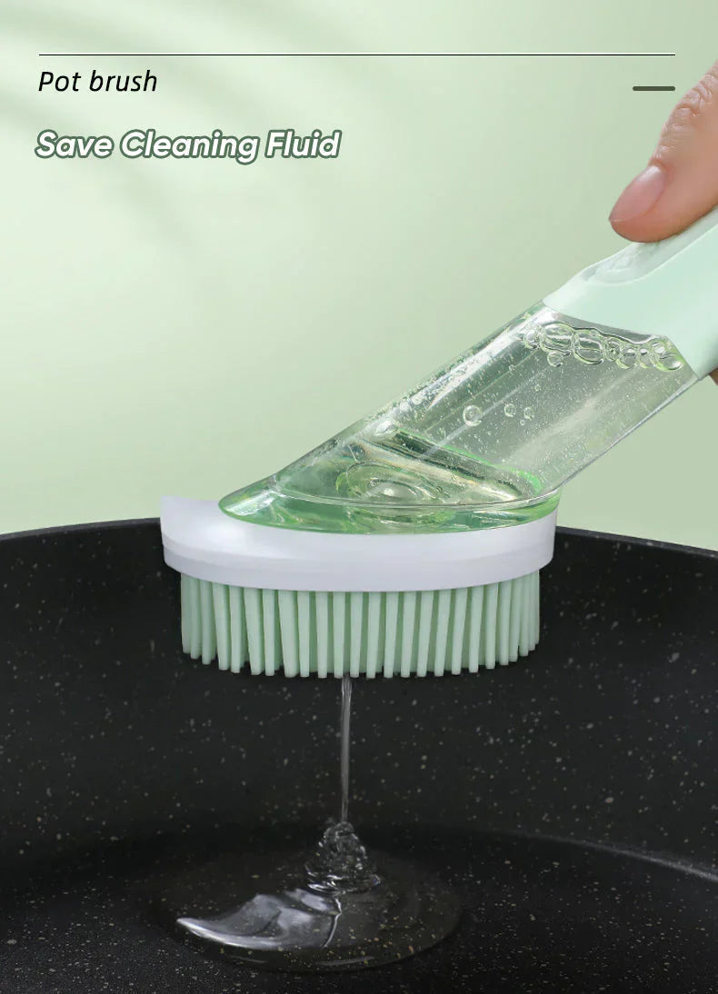 Exclusiva escova de dupla utilização, limpa a sua cozinha, lava a louça com um sistema de dispenser de sabão líquido ou detergente.