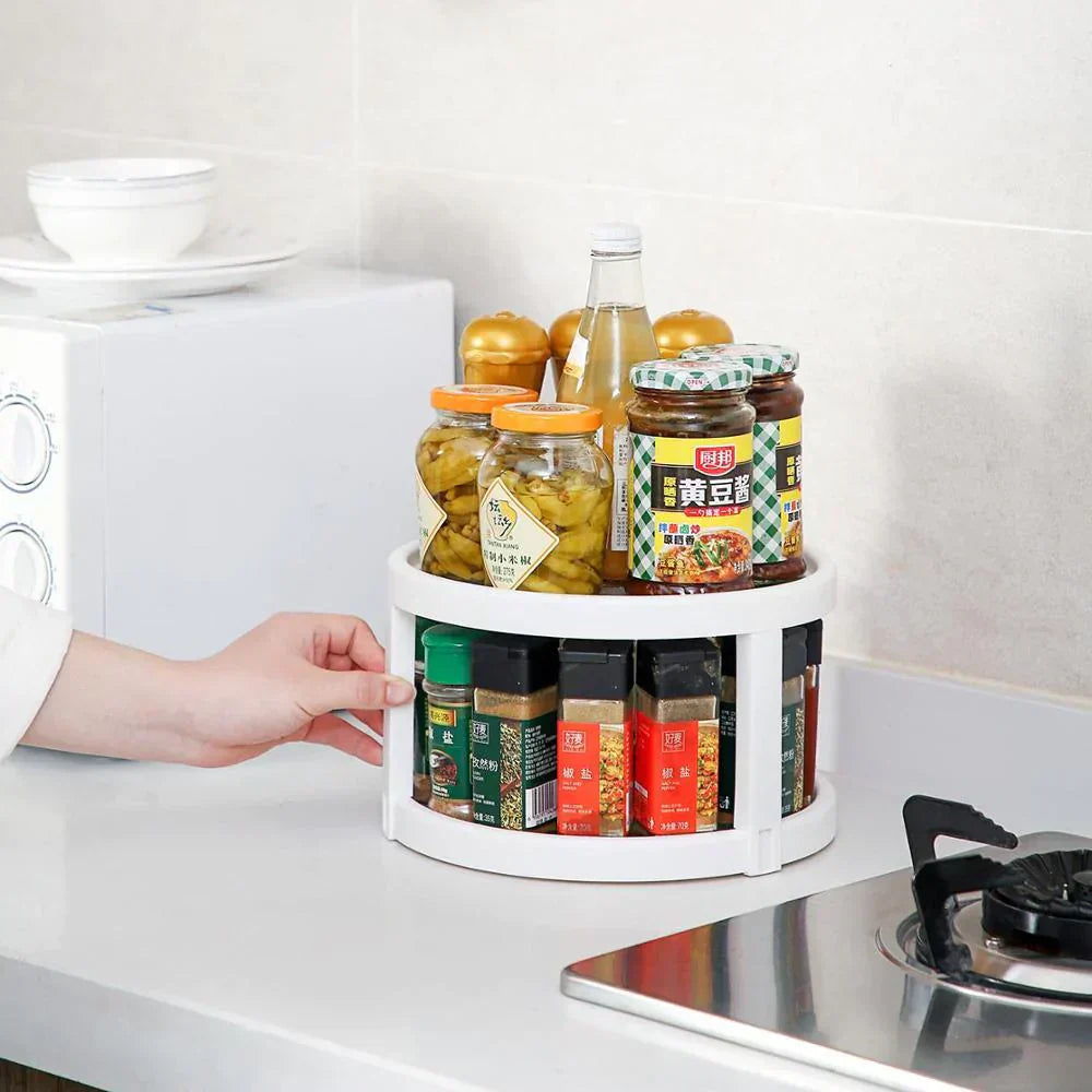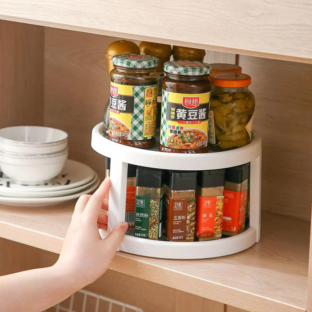 Você pode usá-lo em sua cozinha, armário de alimentos, geladeira e até mesmo armários de banheiro. Gire o armazenamento, efetivamente economizando espaço, grande capacidade, seguro e conveniente. Fácil de armazenar e organizar especiarias, condimentos e outros itens de mesa Conveniente de qualquer direção; este carrossel conveniente de 2 camadas de 360 graus é muito adequado para armários ou contadores.