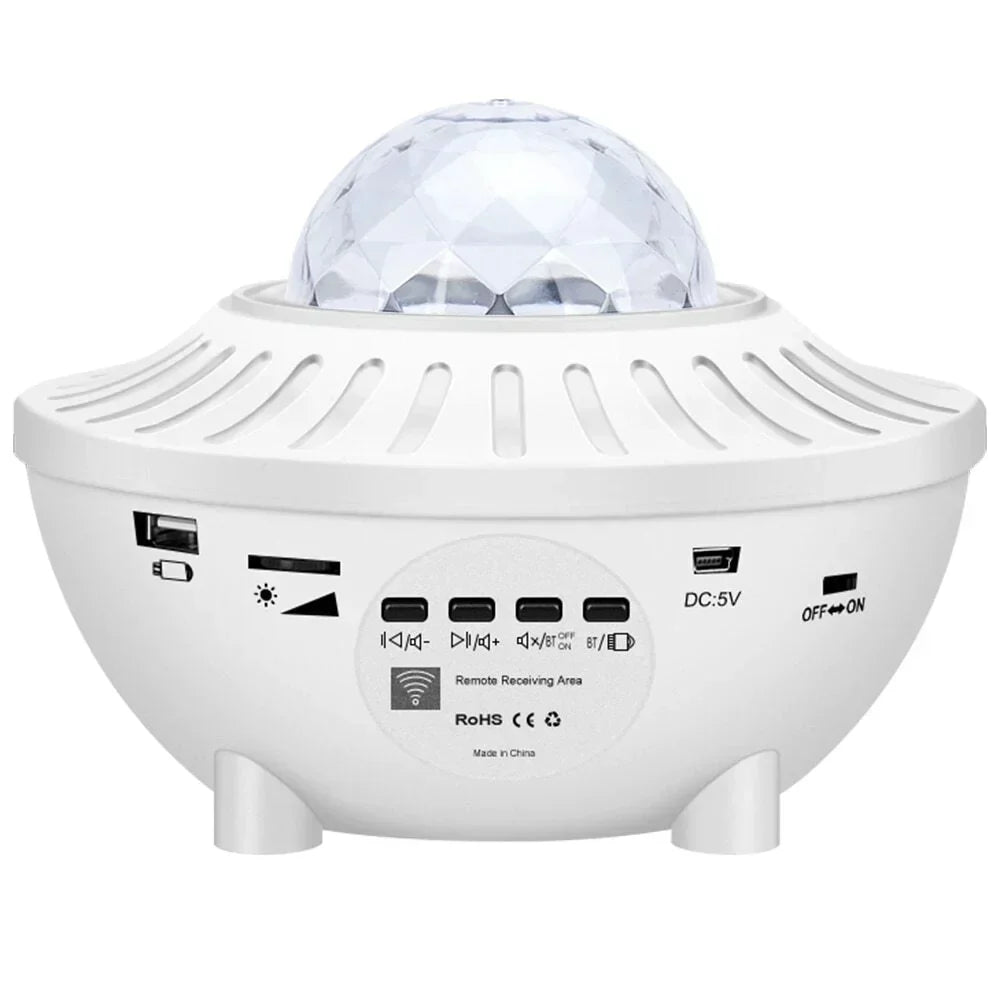 Ela possui 21 modos de projeção que podem ser controladas através do controle remoto. ANebulosa apresenta um efeito de luz giratório de 360 ° simulando belas ondas do oceano que criam uma experiência super relaxante na hora de dormir.
