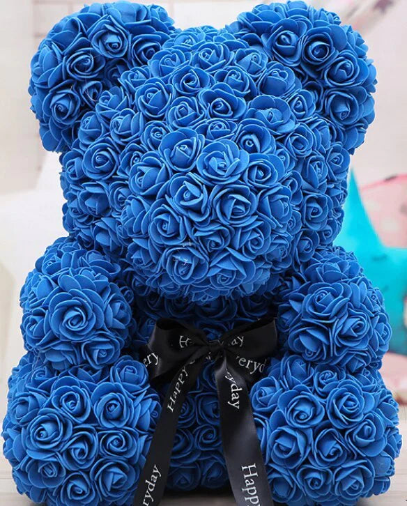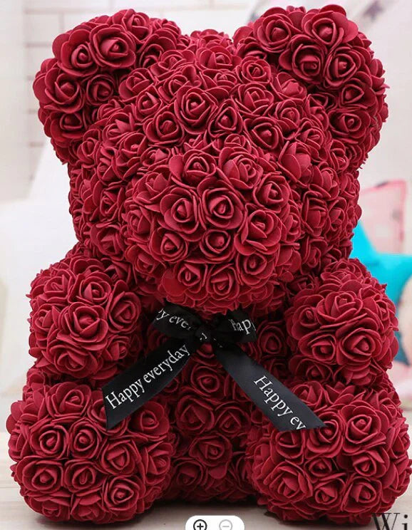 Possui um rigoroso processo de montagem manual e controle de qualidade para garantir que as rosas se formem em uma forma de ursinho de pelúcia charmoso e romântico.
